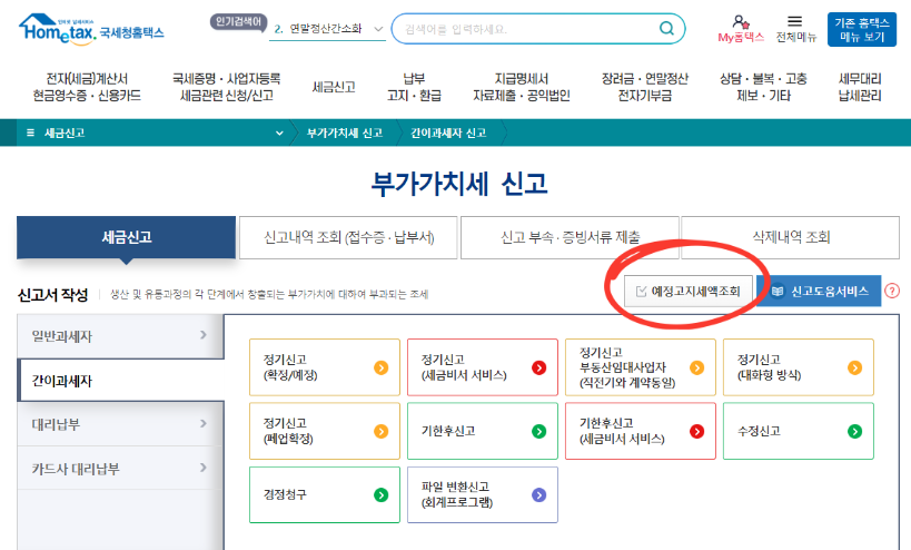 국세청 홈택스에서 예상고지세액도 조회해 볼 수 있습니다.