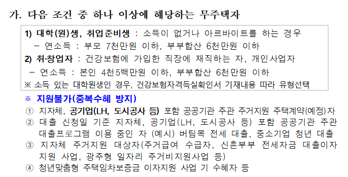 대학생, 대학원생, 취업 준비생이라면 부모님의 연소득이 7,000만원 이하 / 부부 합산 연소득 6,000만 원 이하여야 합니다.