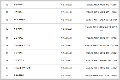 사용가능한 주유소는 23개가 확인됩니다. 주유소 중 사업장 이름에 주유소가 포함되지 않는다면 정확한 가맹점 이름을 가맹점 조회에서 검색해 보시길 바랍니다.
