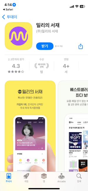 이 문자를 받고 밀리의 서재 가입을 진행했습니다.