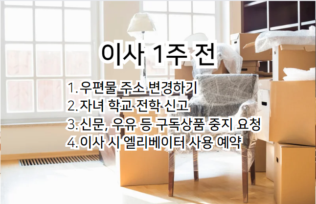 이사 1주일 전에 확인해야 할 사항들을 알아보겠습니다.