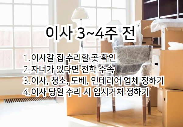 먼저 이사 한달 전에 체크해야할 항목들을 알아보겠습니다.