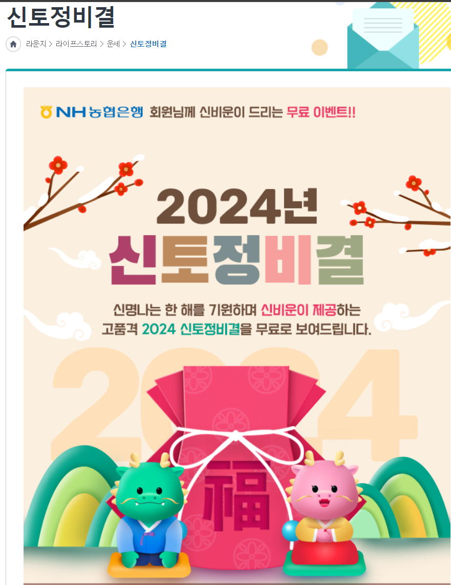 농협은행에서도 신년 토정비결들을 무료로 제공하고 있습니다.