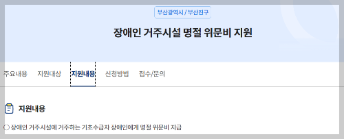 지원자격 : 장애인 거주시설의 기초수급 장애인