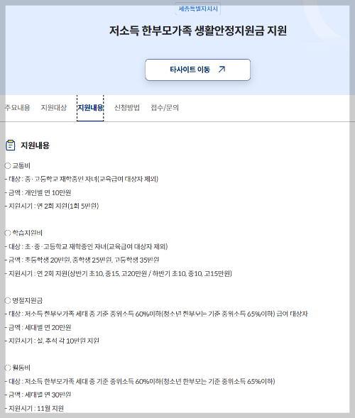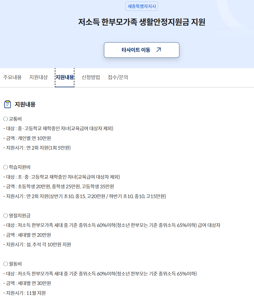 지원자격 : 저소득 한부모가족 중 기준중위소득 60% 이하인 급여 대상자, 청소년 한부모 가정은 기준 중위소득 65% 이하