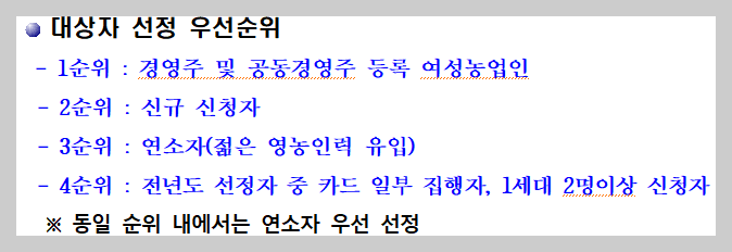 1순위는 경영주 및 공동경영주에 등록된 여성농업인입니다.