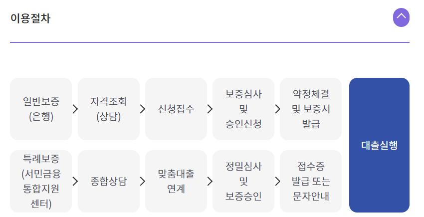 *특례 보증의 경우 신용정보만이 아닌 상담 과정에서 자금의 용도, 소득 상황, 상환의지와 계획 등을 통합 심사하여 지원이 결정됩니다.