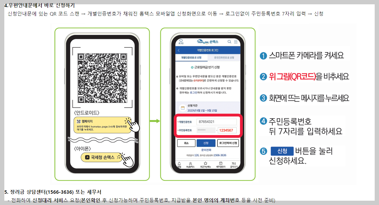 위 방법으로 직접 신청이 어렵다면 장려금 상담센터나 세무서를 통해 신청대리 서비스를 요청할 수 있습니다.