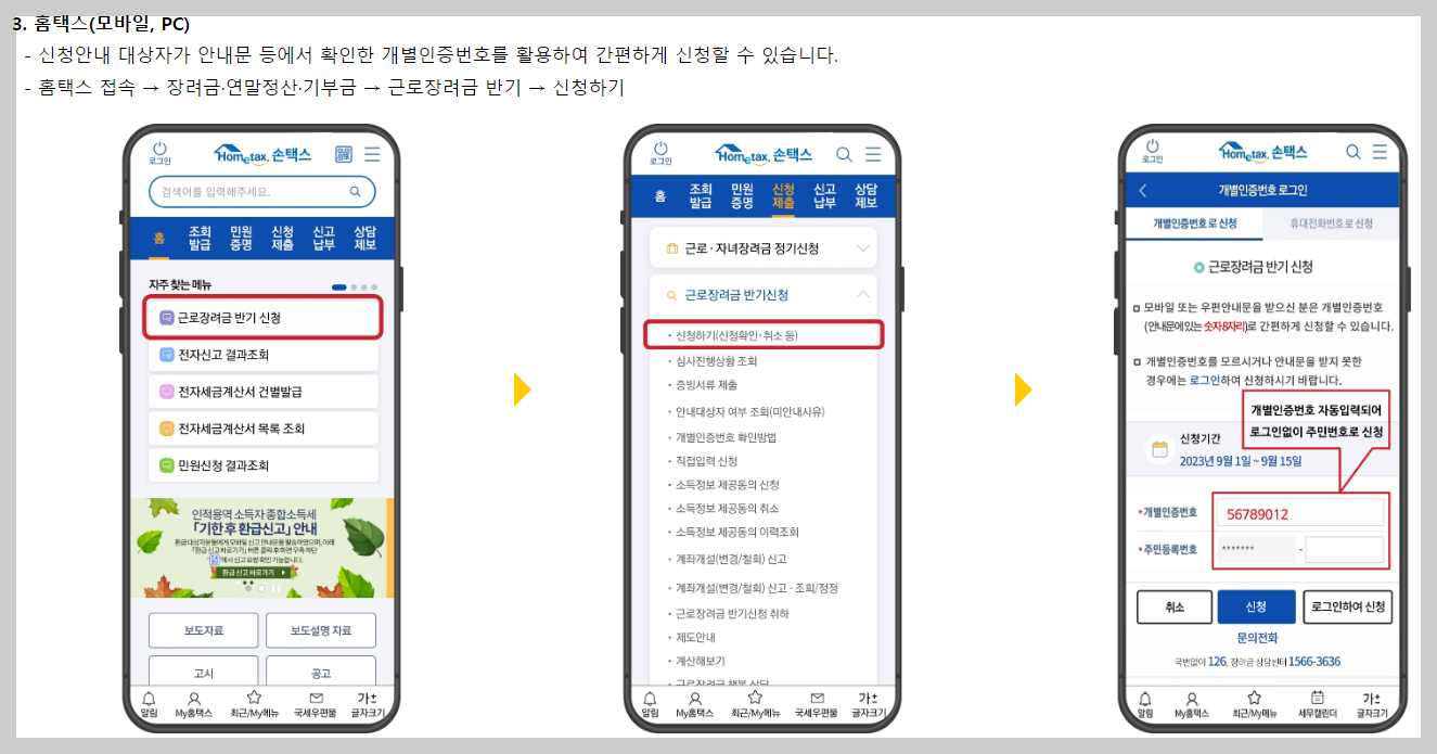 신청 안내문을 받지 못하는데 대상자에는 포함되는 경우에는 홈택스 모바일이나 PC에서 신청하거나 세무서에 서면신청이 가능합니다.