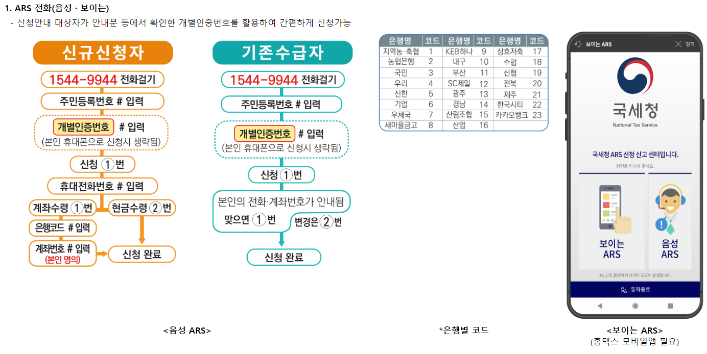 ARS신청 시 1544-9944로 전화 걸어 신청 가능하며 은행코드는 위 이미지를 참고 바랍니다.